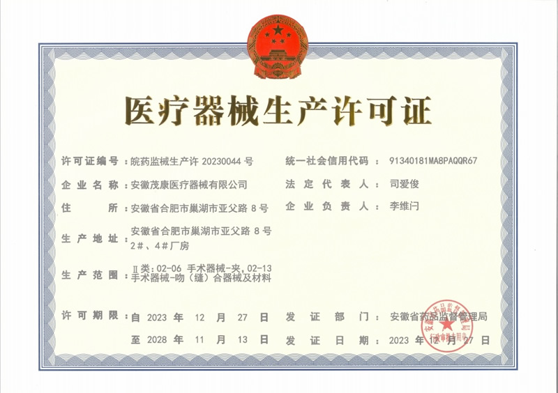 喜報!熱烈祝賀茂康醫療器械取得《生產許可證》